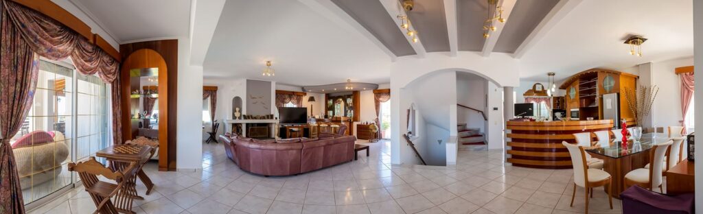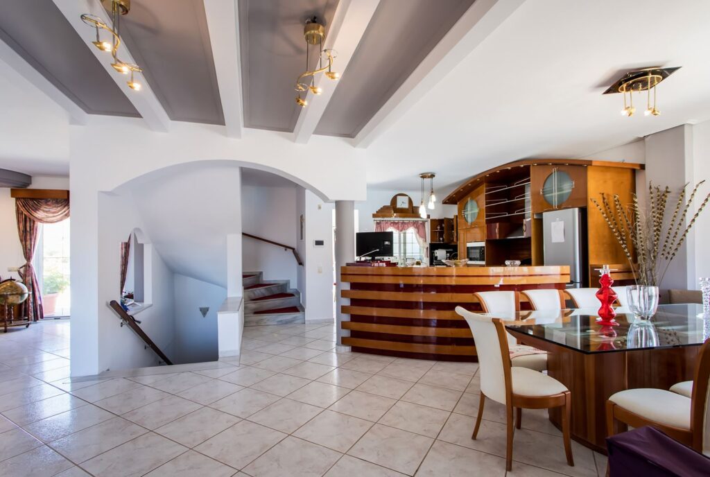 The villa itself exudes elegance and sophistication, with its impressive staircase leading to the main house and pool area. Designed to maximize the panoramic sea views, every corner of the villa offers a breathtaking vista, ensuring an atmosphere of serenity and bliss.