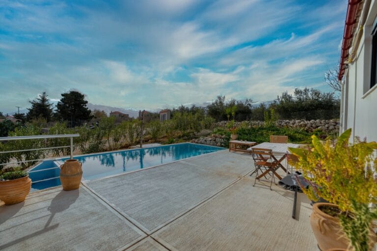 Escape to tranquility with this newly built, single-level home located just outside the charming village of Litsarda. This modern retreat combines comfort with breathtaking natural beauty.