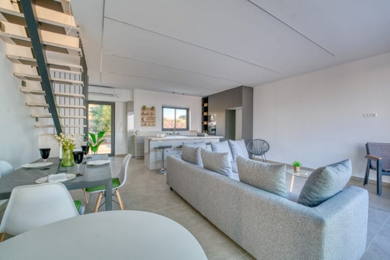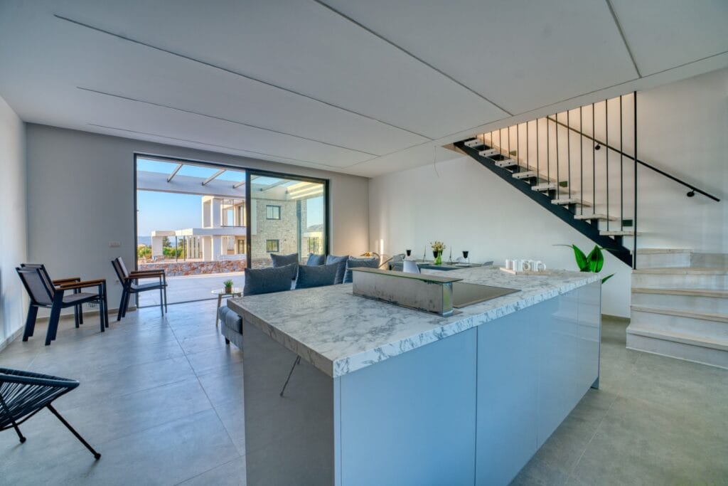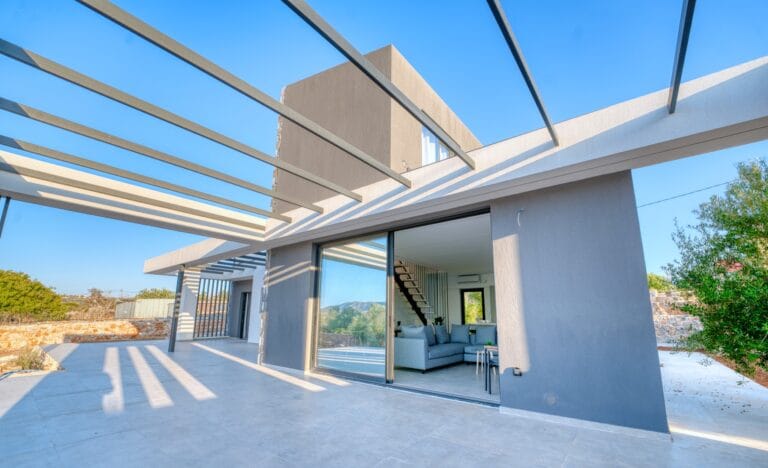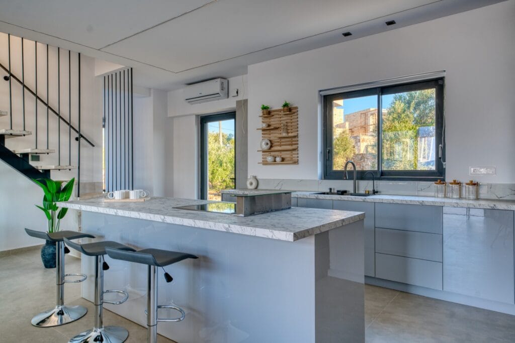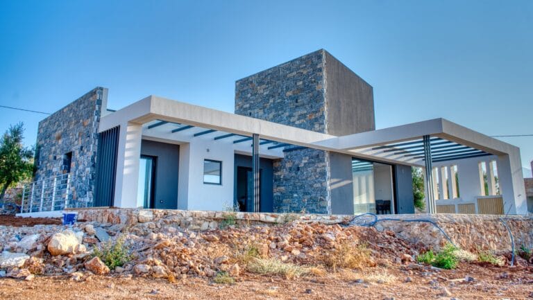 Completed in summer 2025, this villa has been crafted with meticulous attention to detail, combining modern luxury with timeless Cretan charm. The exterior blends contemporary architecture with beautiful local stonework, while triple-glazed aluminium windows and doors ensure comfort and energy efficiency year-round.