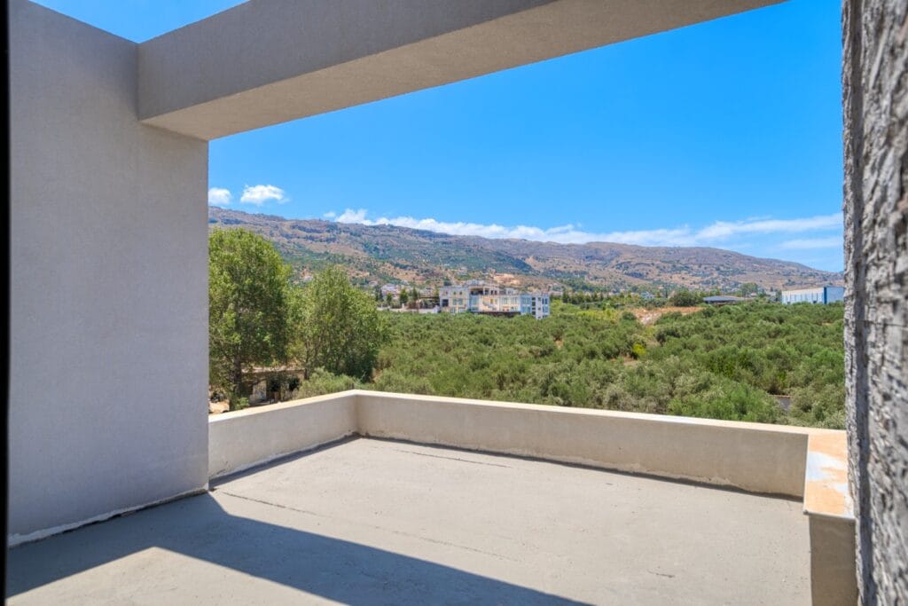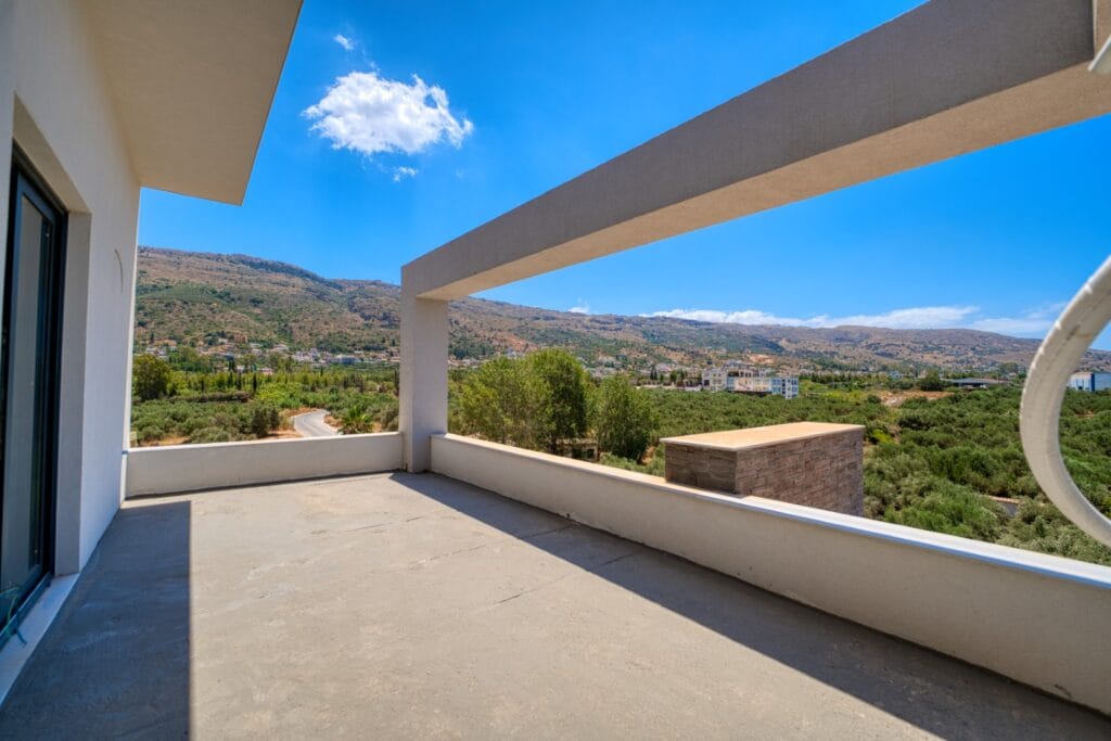 Accessible via an internal staircase, the loft includes two bedrooms, one bathroom, and a large private terrace with breathtaking panoramic sea views — the perfect spot to relax and enjoy the sunset over the Bay of Souda.
