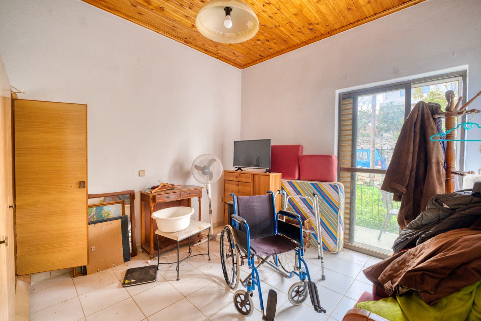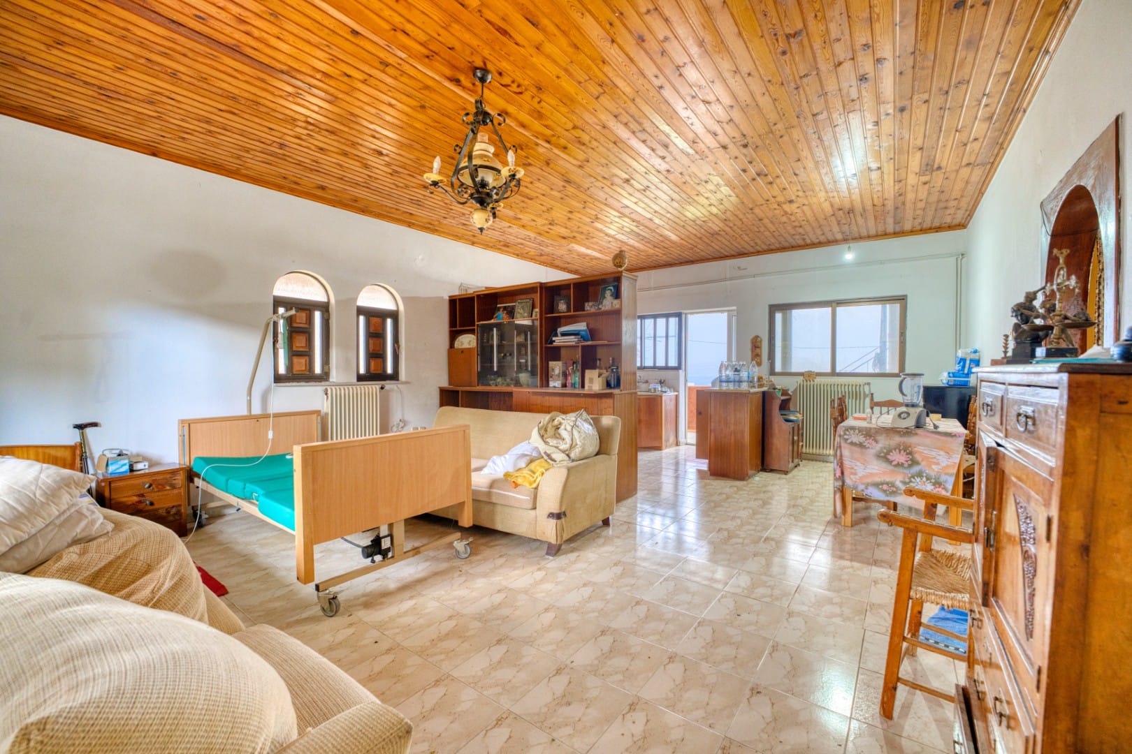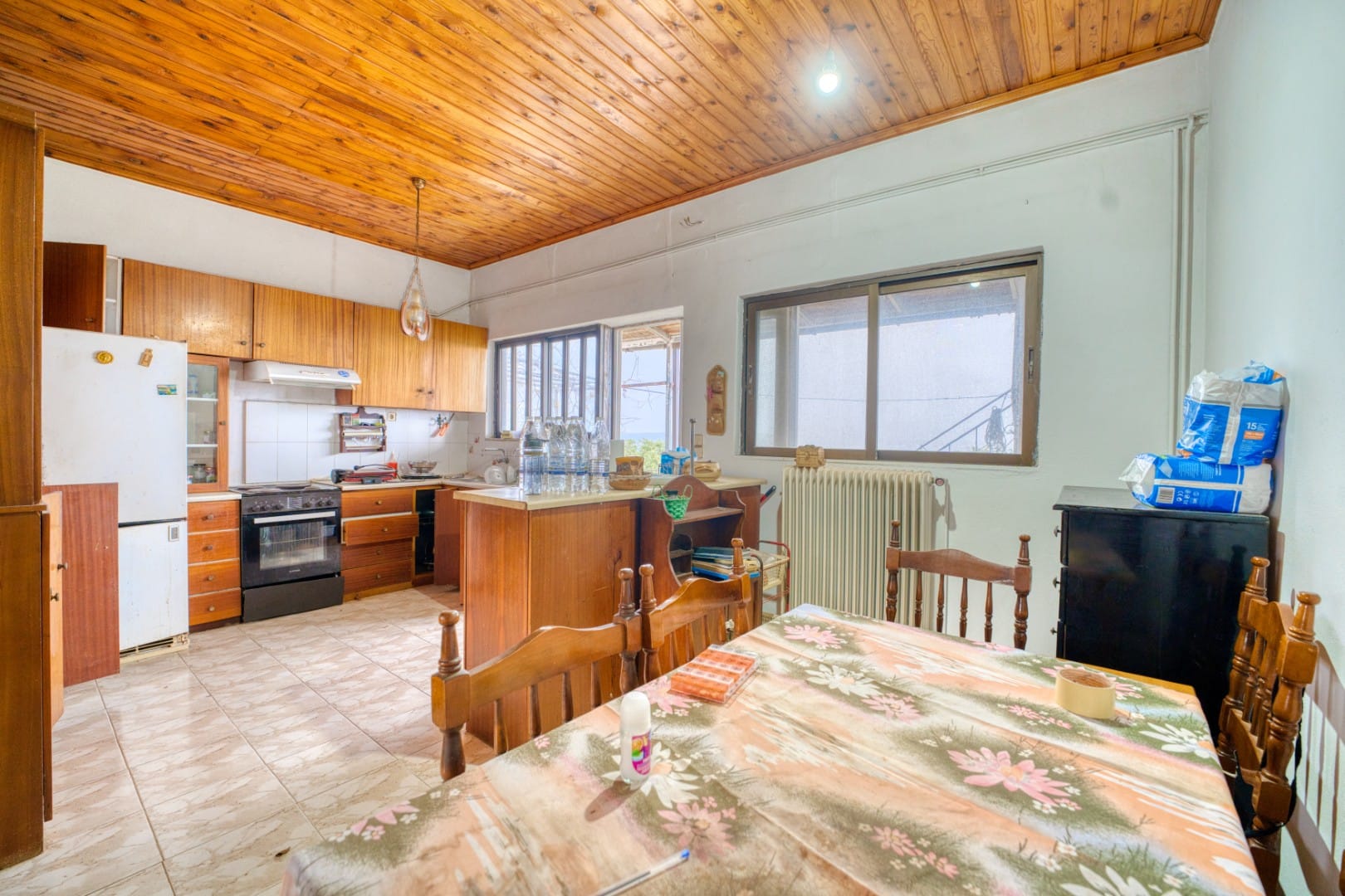 The property is equipped with central heating, air-conditioning units, a solar water heating system, and internet connection, all of which are older and would benefit from replacement as part of the renovation.