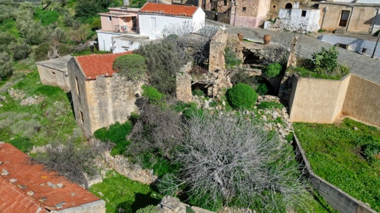 In the heart of an authentic Cretan settlement, a unique property is offered for sale, consisting of four historic buildings of traditional Cretan architecture, featuring impressive arches, multiple rooms, and authentic period elements.